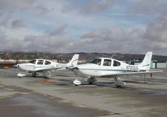 SBA-based Roger Freedman and Glenn Beltz withstood brutal CFI badgering from drooling position holder Gordon Feingold today as they ventured 25nm East to CMA in their new SR20 N720DG, while Jim Campbell and son hurtled westward from Van Nuys in N7788T so as to rendezvous for breakfast and a photo opportunity.